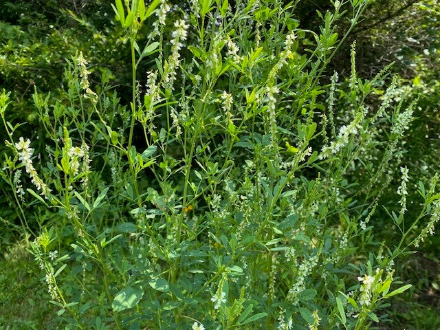 Honey clover (Melilotus albus medikus) flourishes in Summertime at Green Mountain Farms.