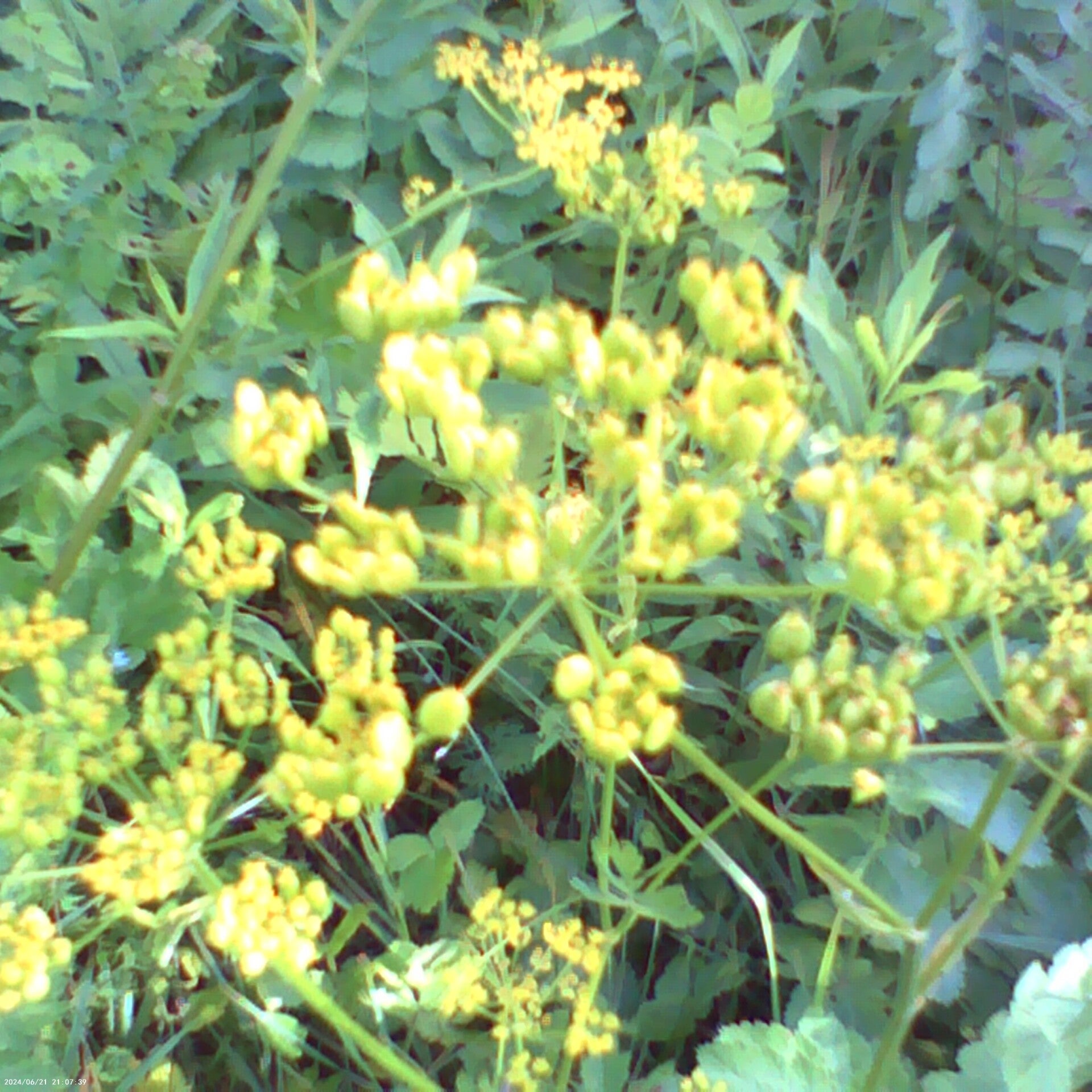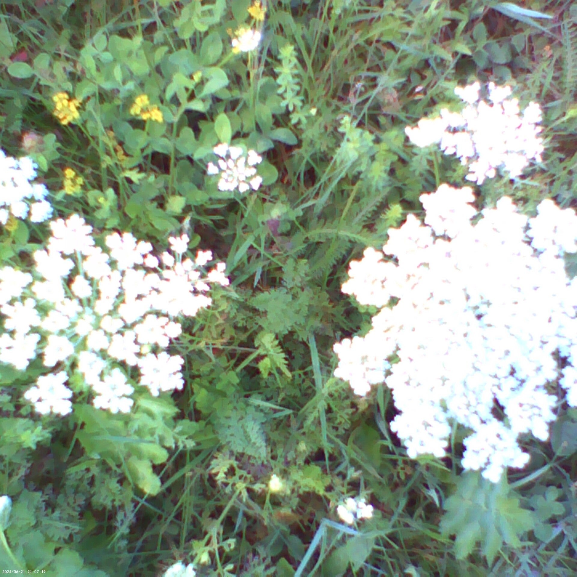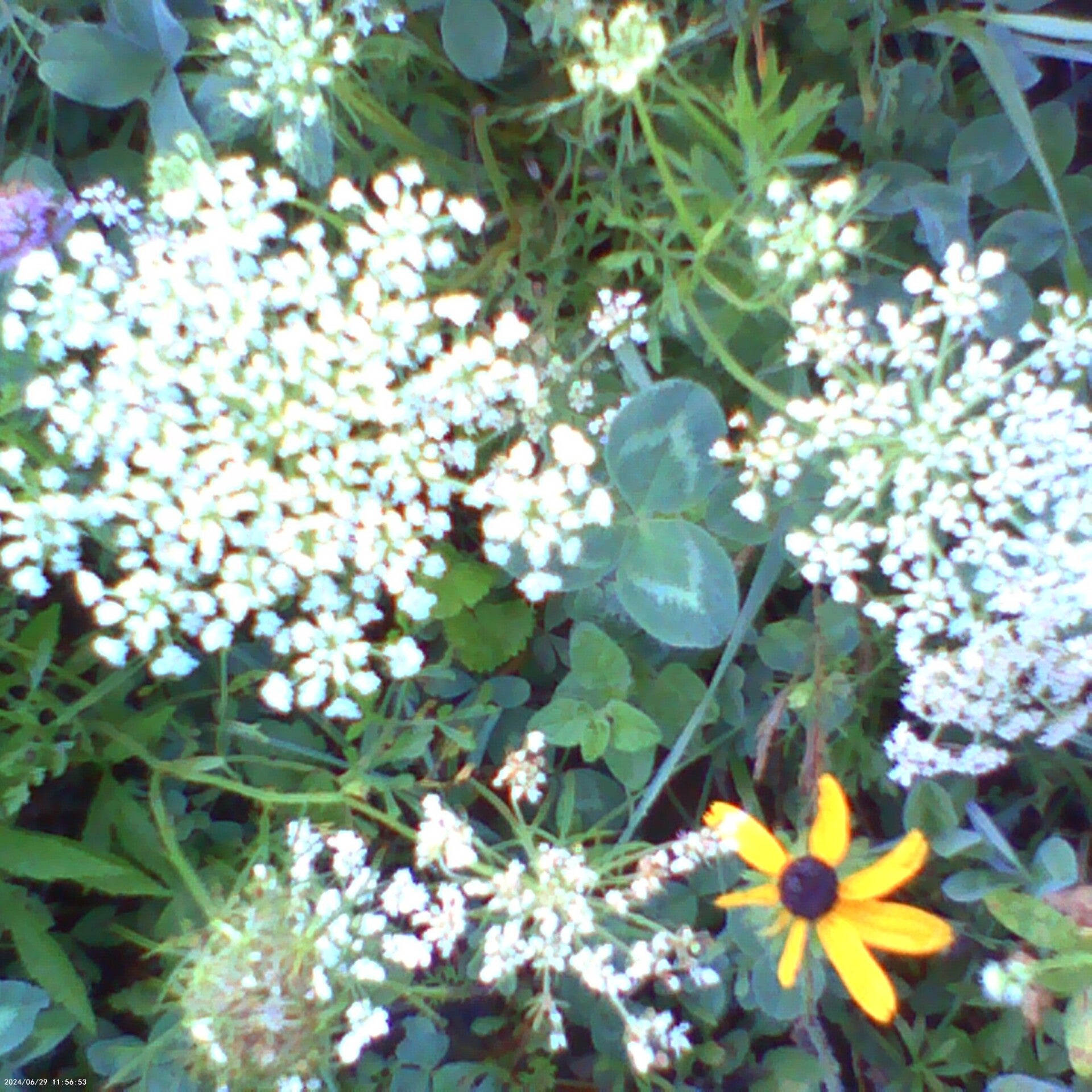 Queen Annes lace (Daucus carota), also known as White baby's breath, and Yellow baby's breath next to it at Green Mountain Farms.
