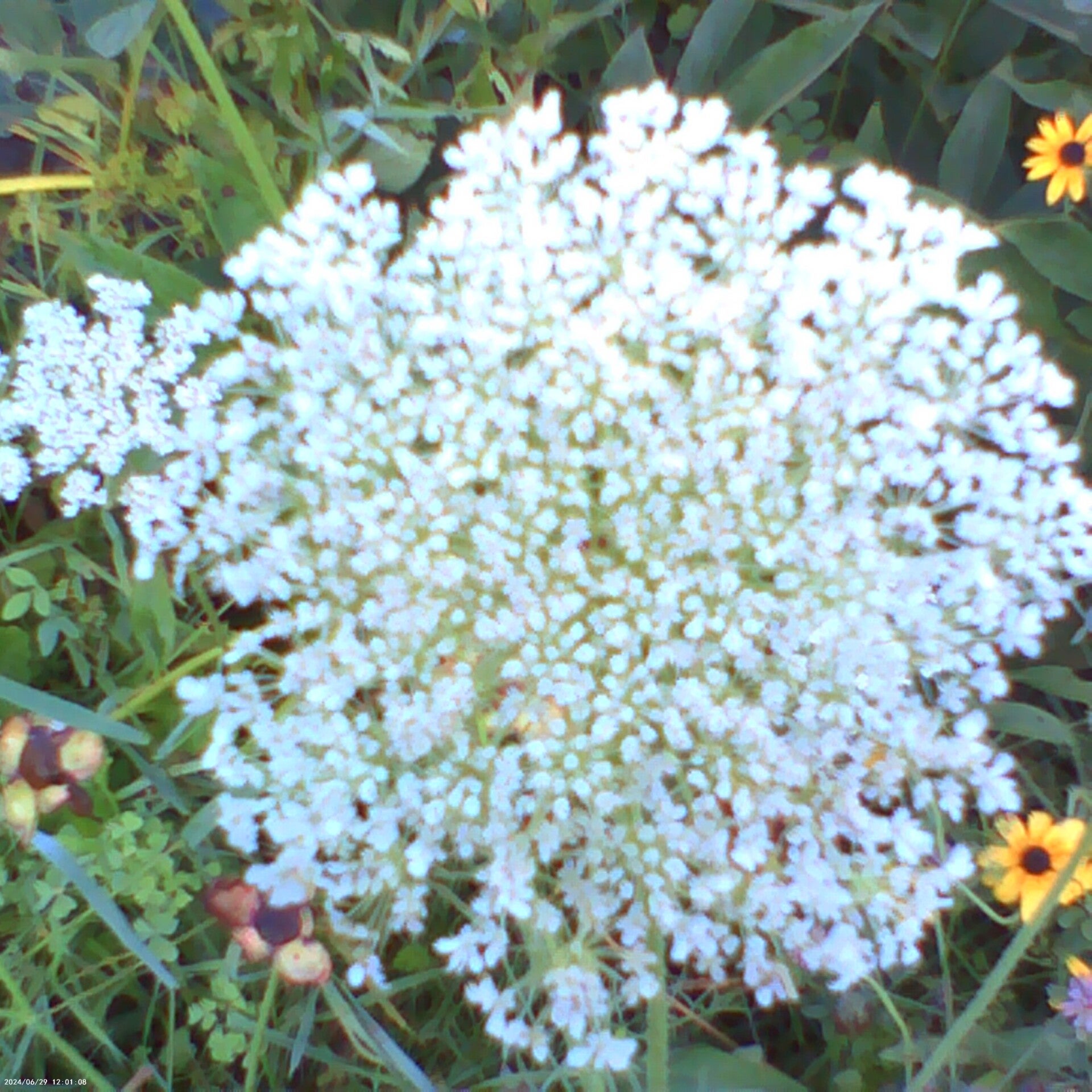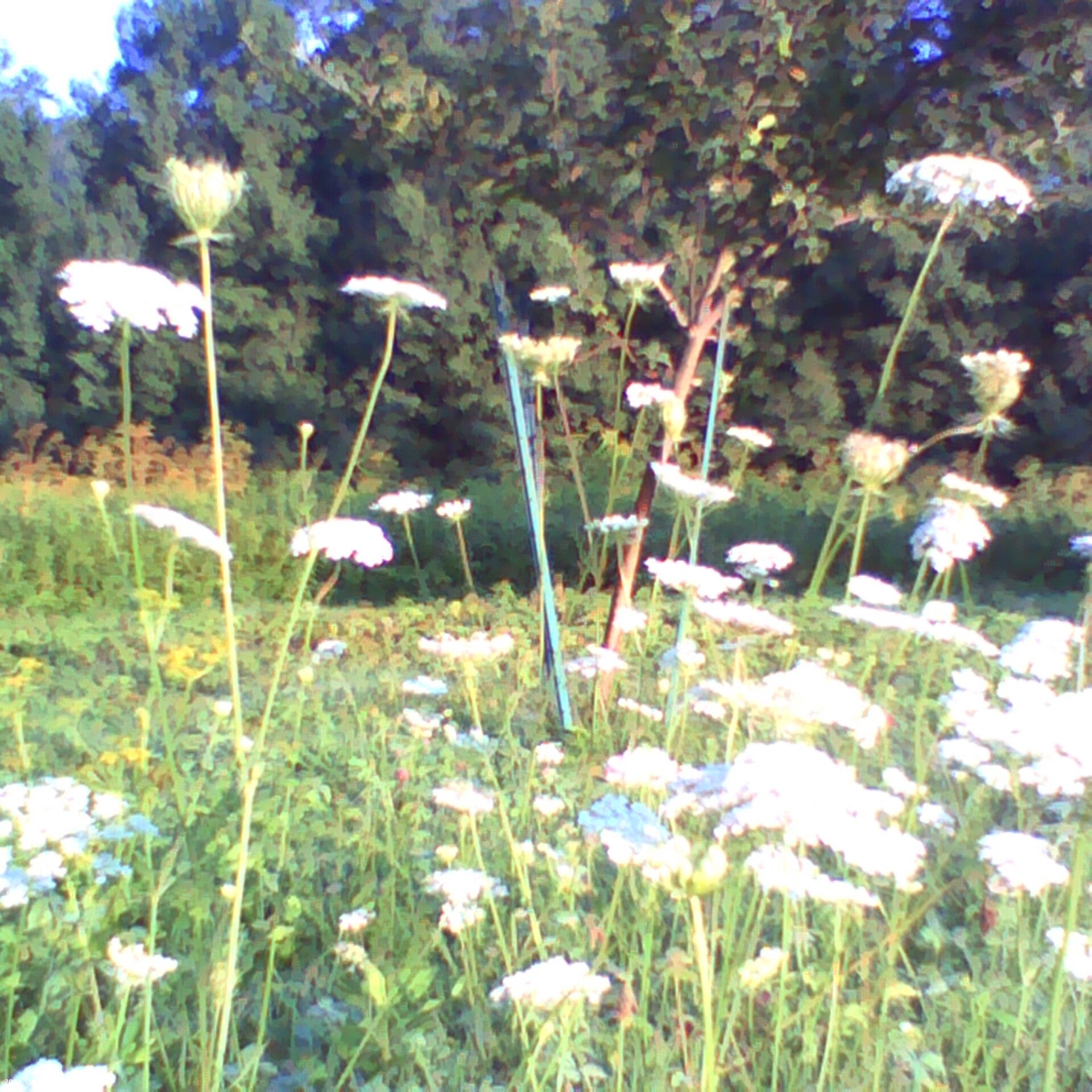 Queen Annes lace all over the place. Scientific name Daucus carota and more Purple-flowered wild red raspberry bush pictures (Rubus odoratus).