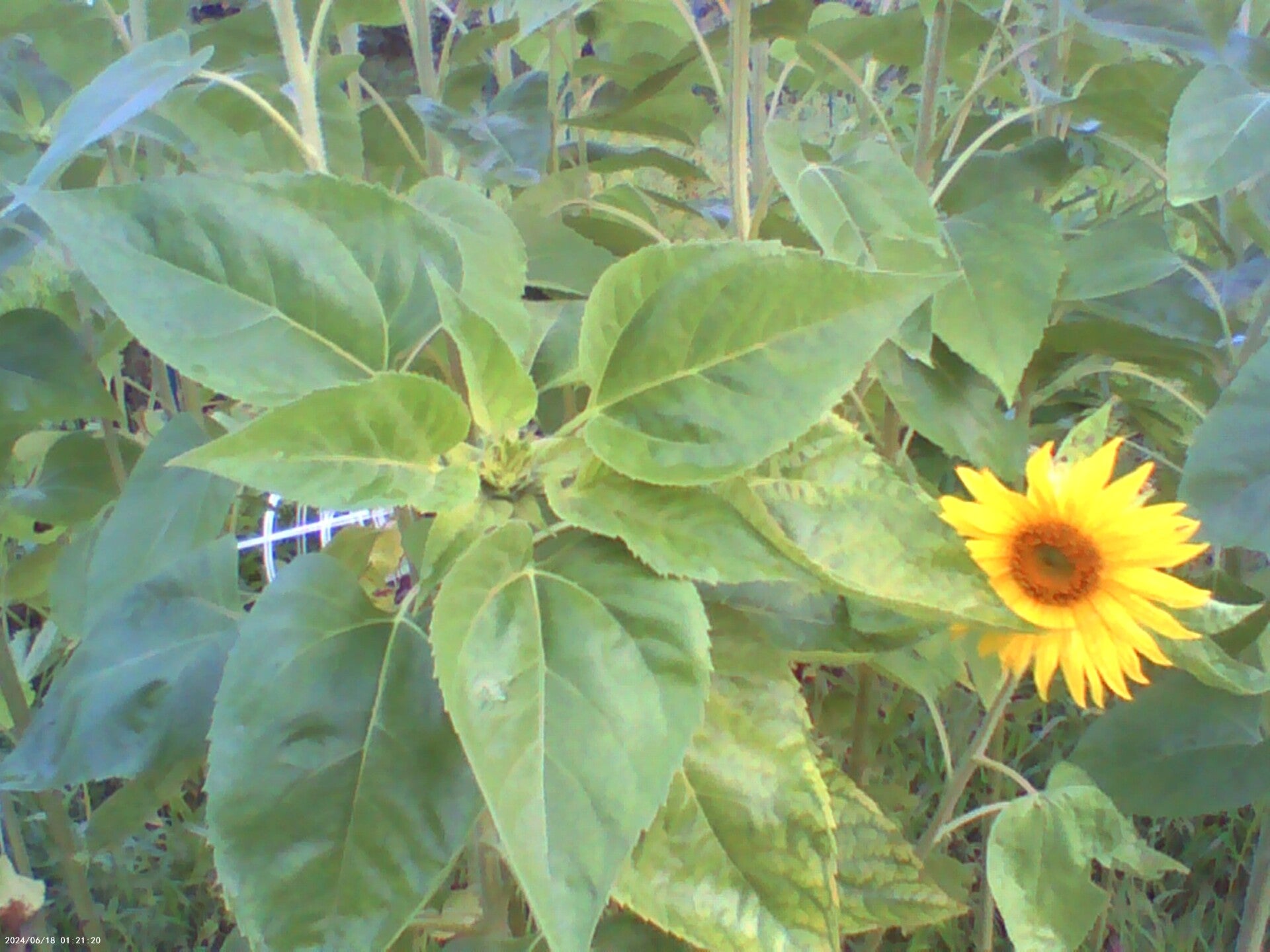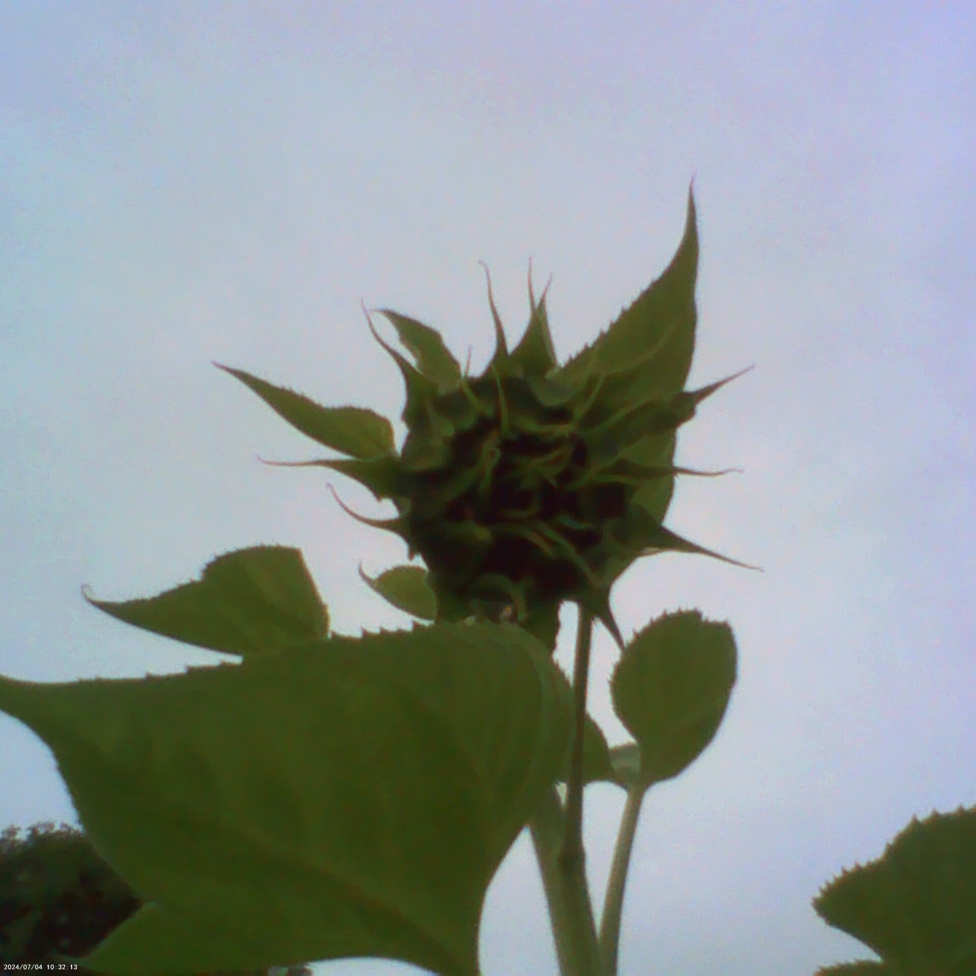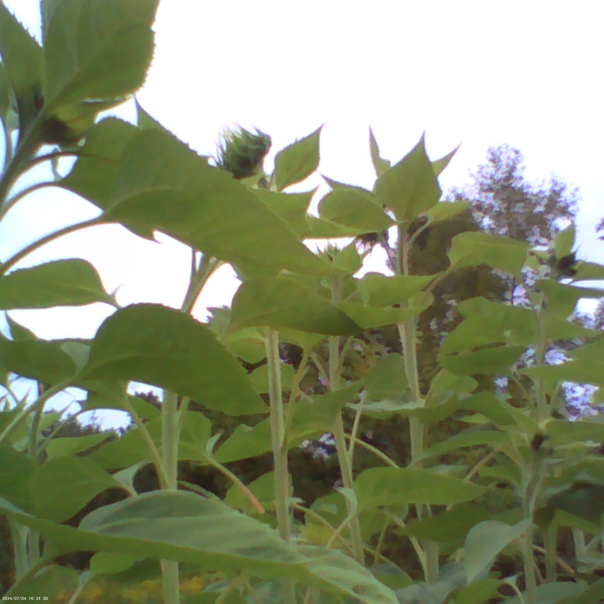 Sunflowers about to open (Helianthus annuus) and honey is money, up for sale.