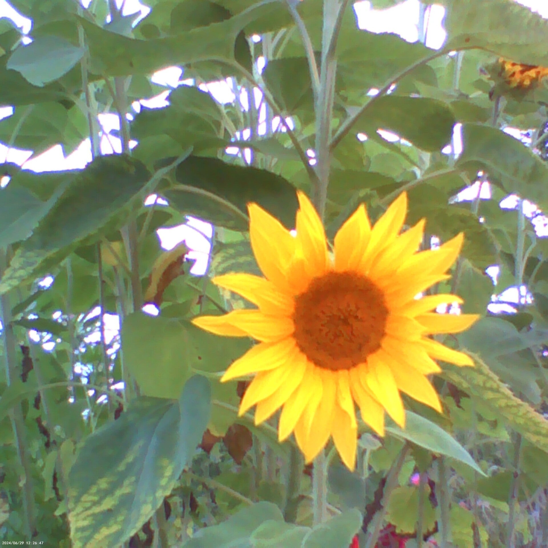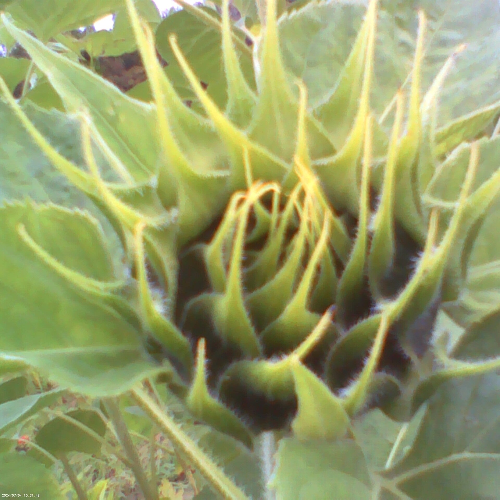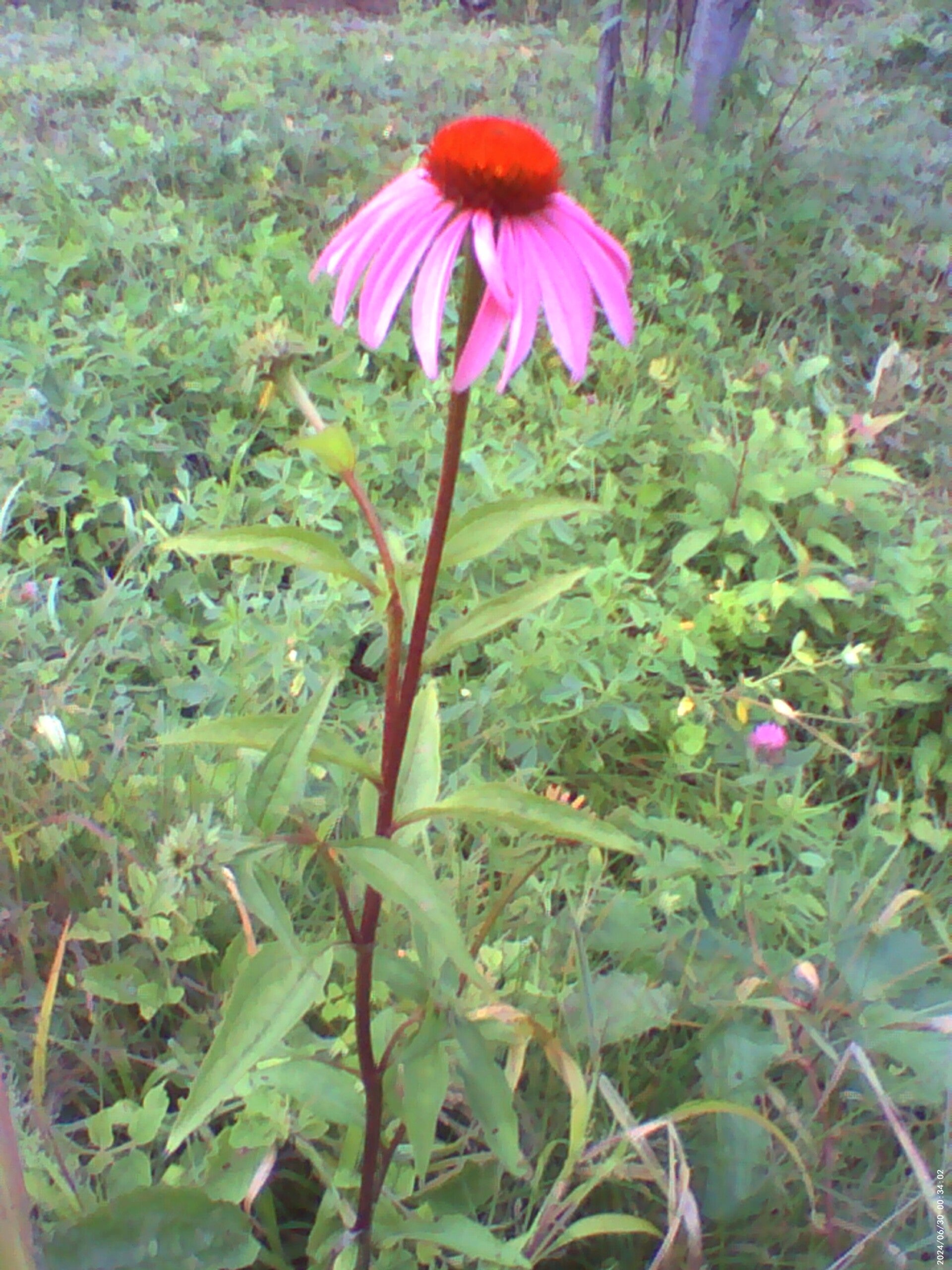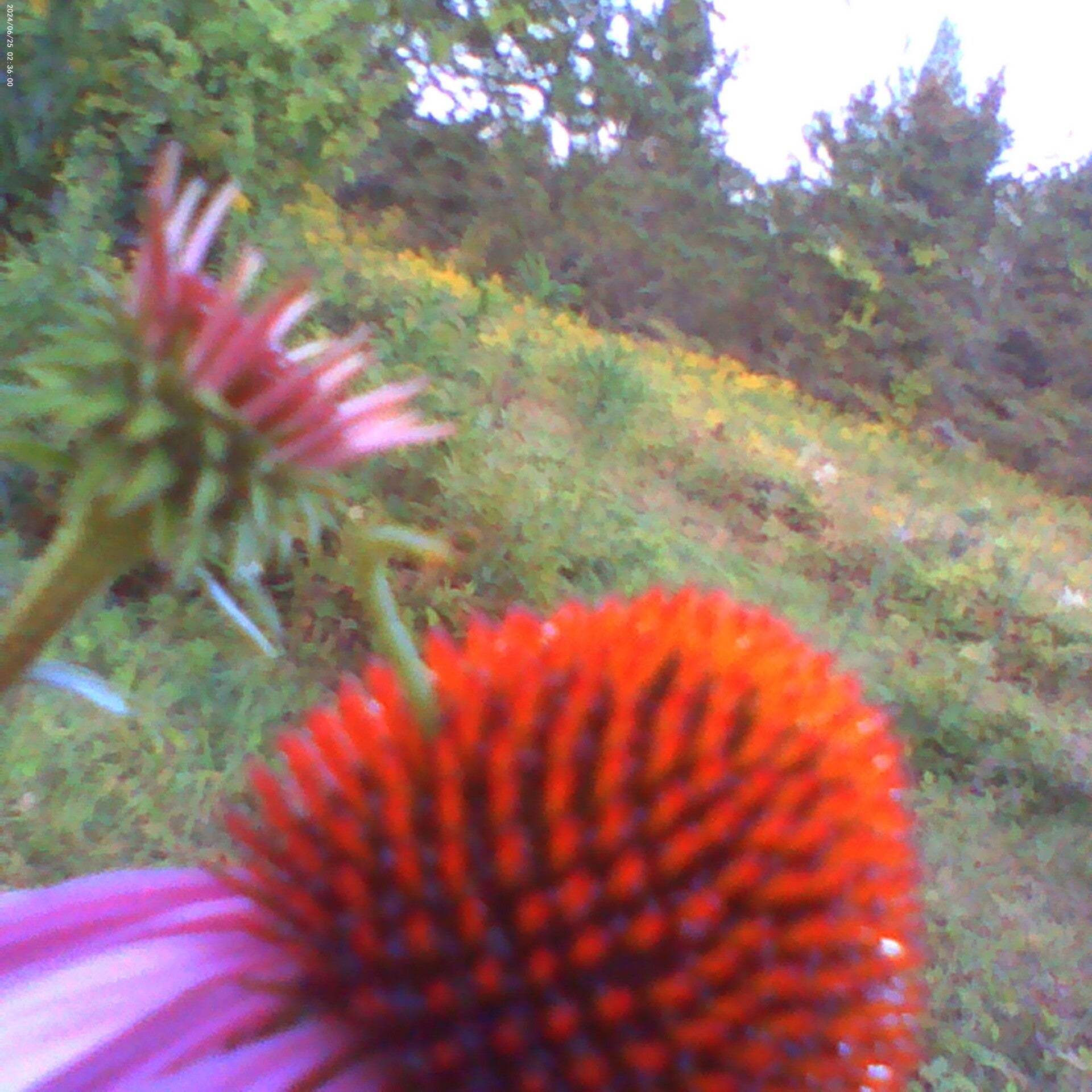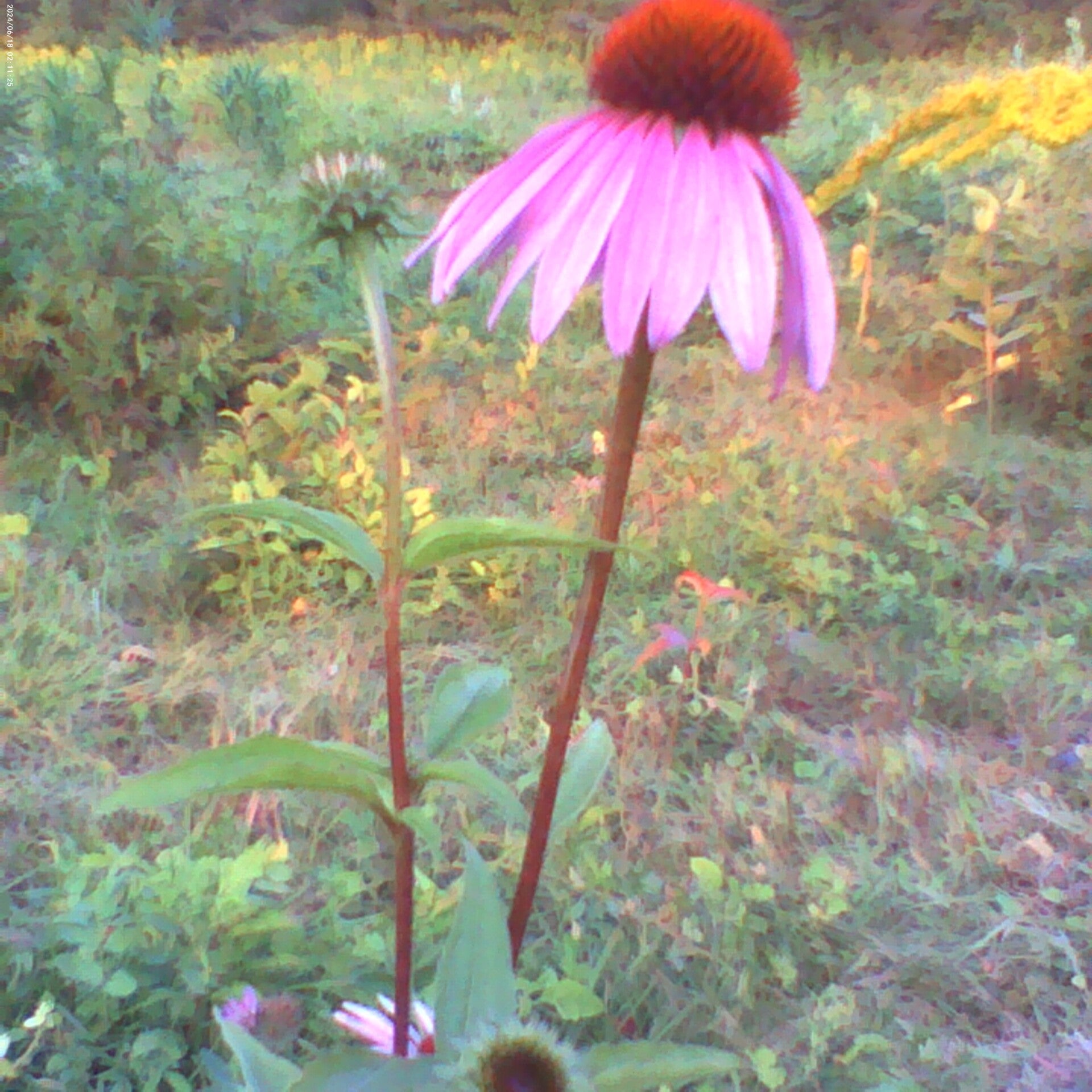 A territorial inch worm protects his Coneflower, we thought it was a piece of grass...