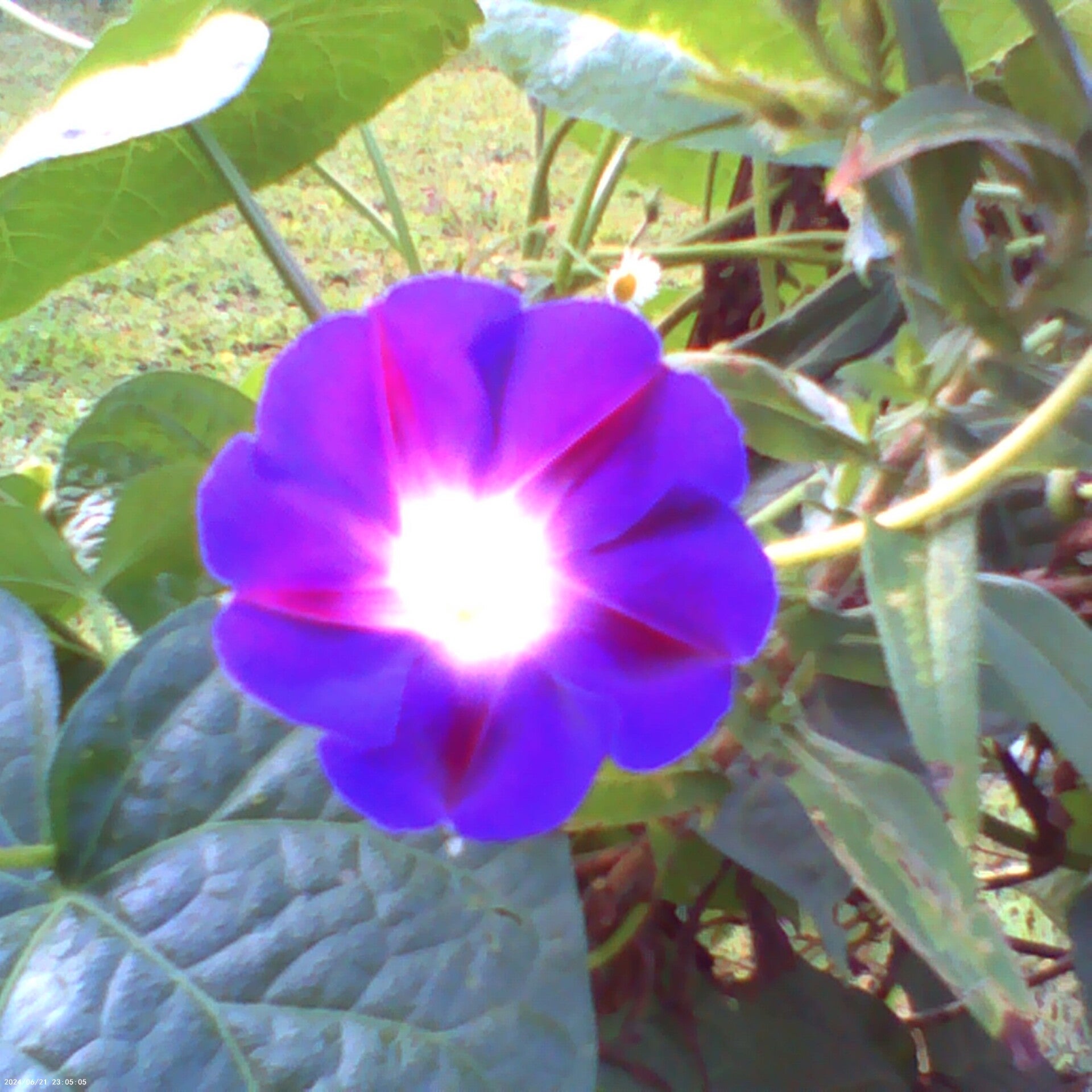 The White morning glory vine and flower (Moonflower, Ipomoea alba) winds up Canada goldenrod at Green Moutain Farms.