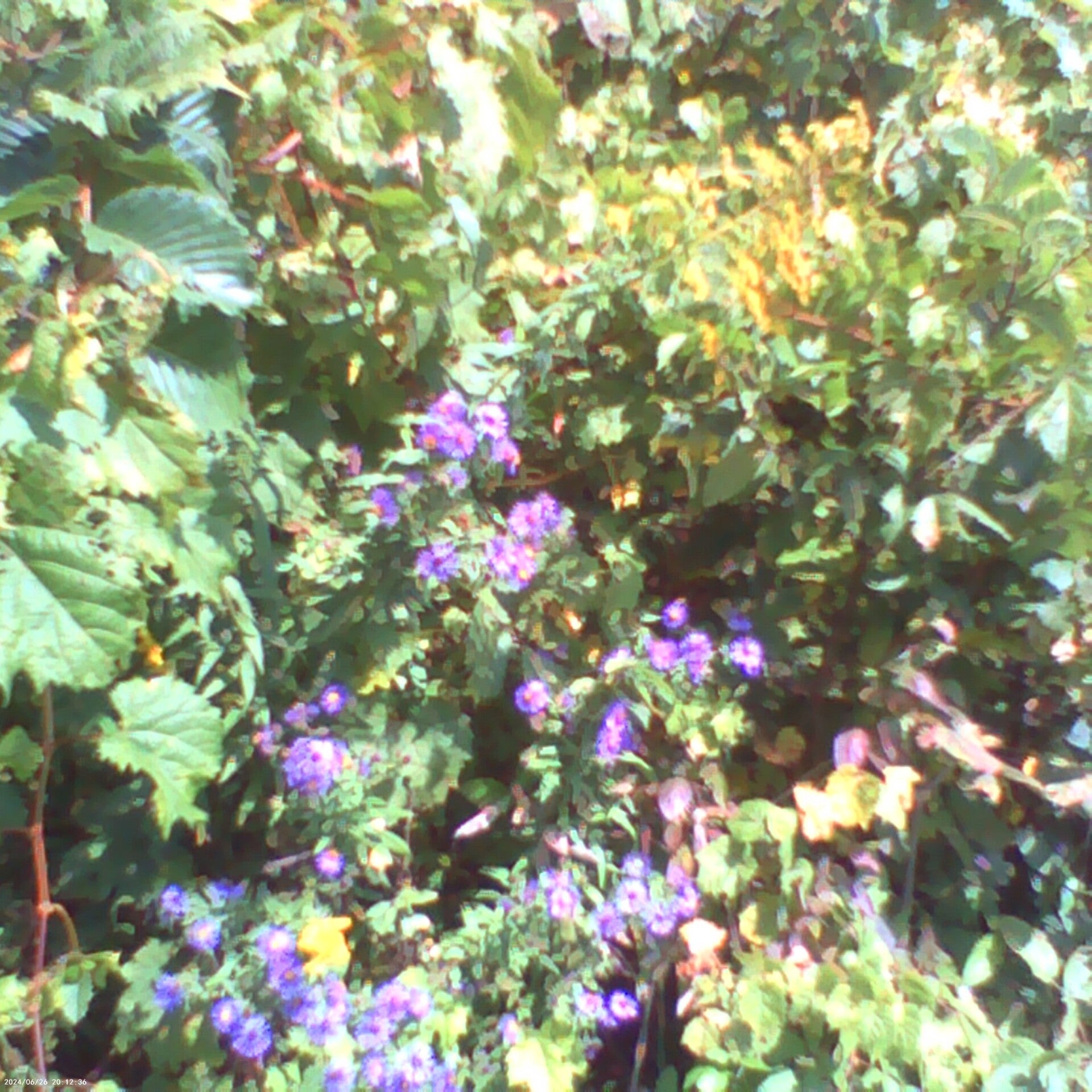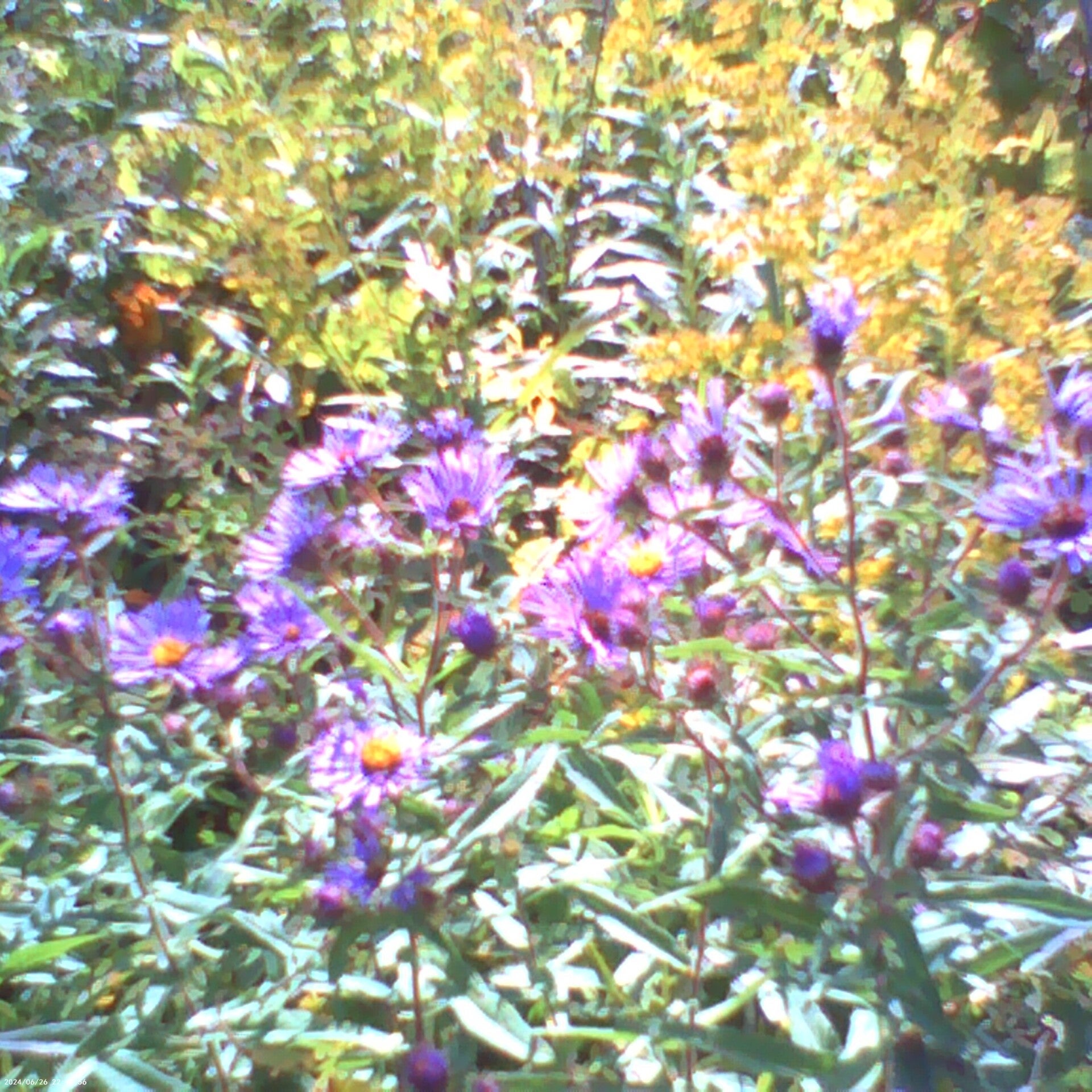 All of the New England aster (Symphyotrichum novae-angliae) at Green Mountain Farms is coming out of the top of Canada goldenrod (Solidago canadensis).