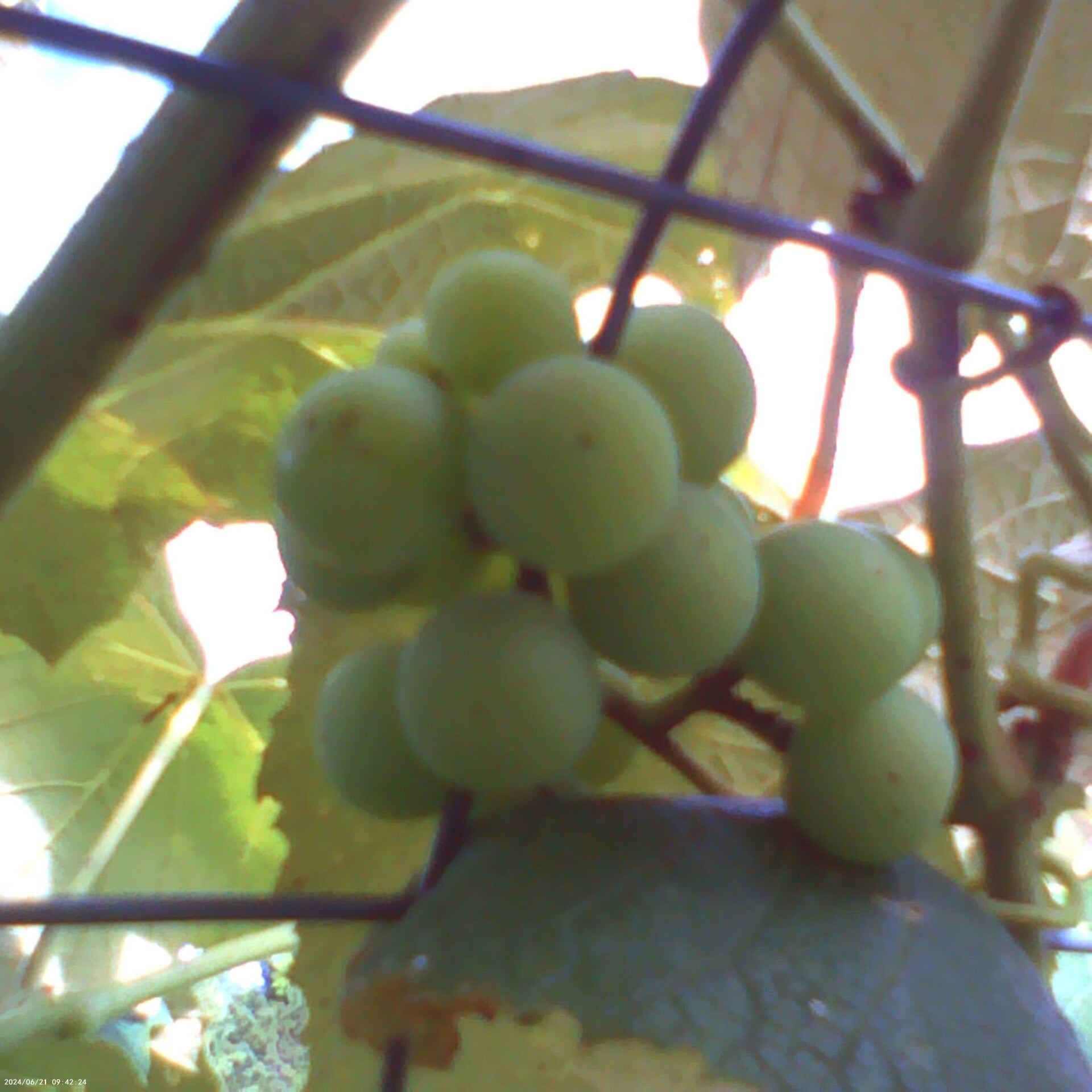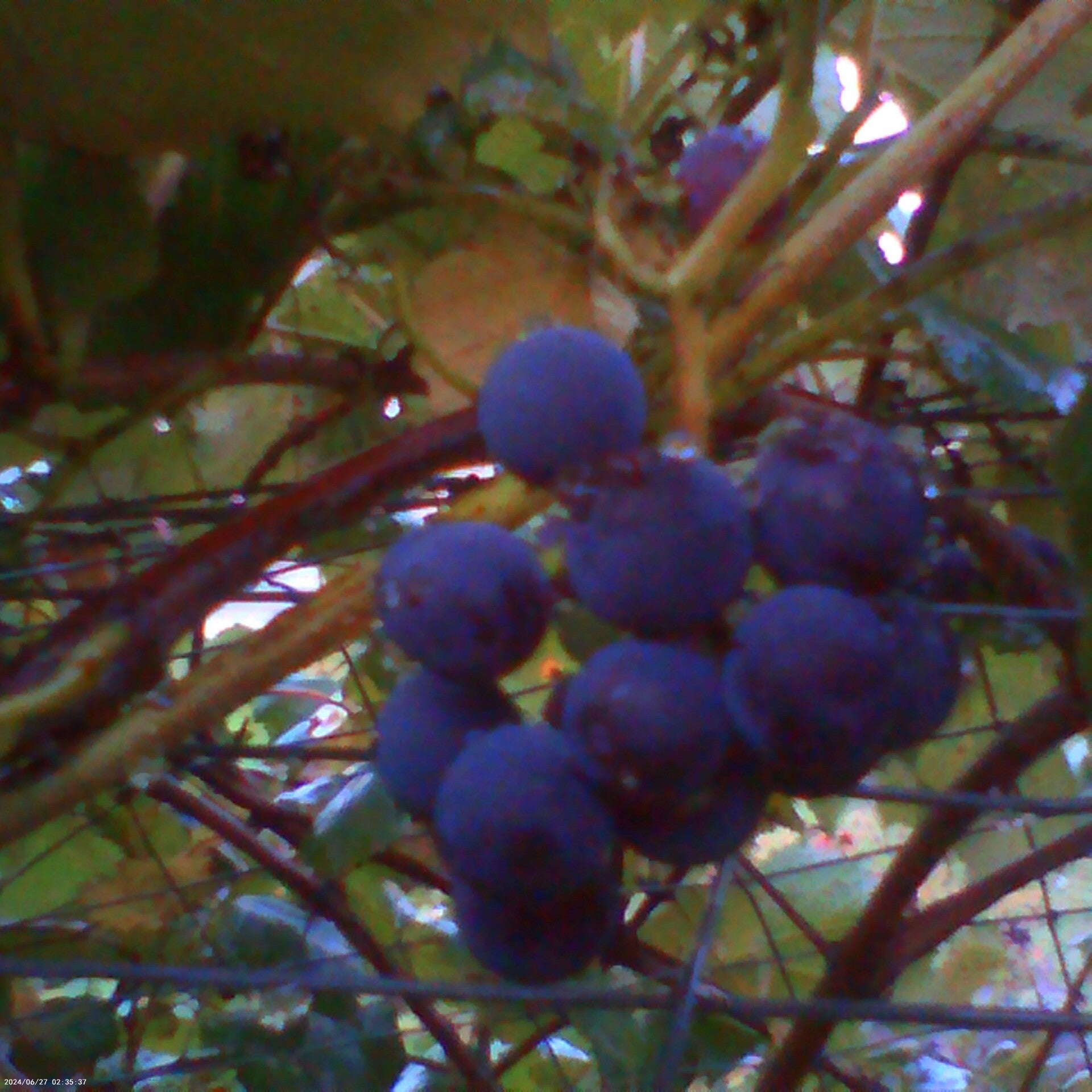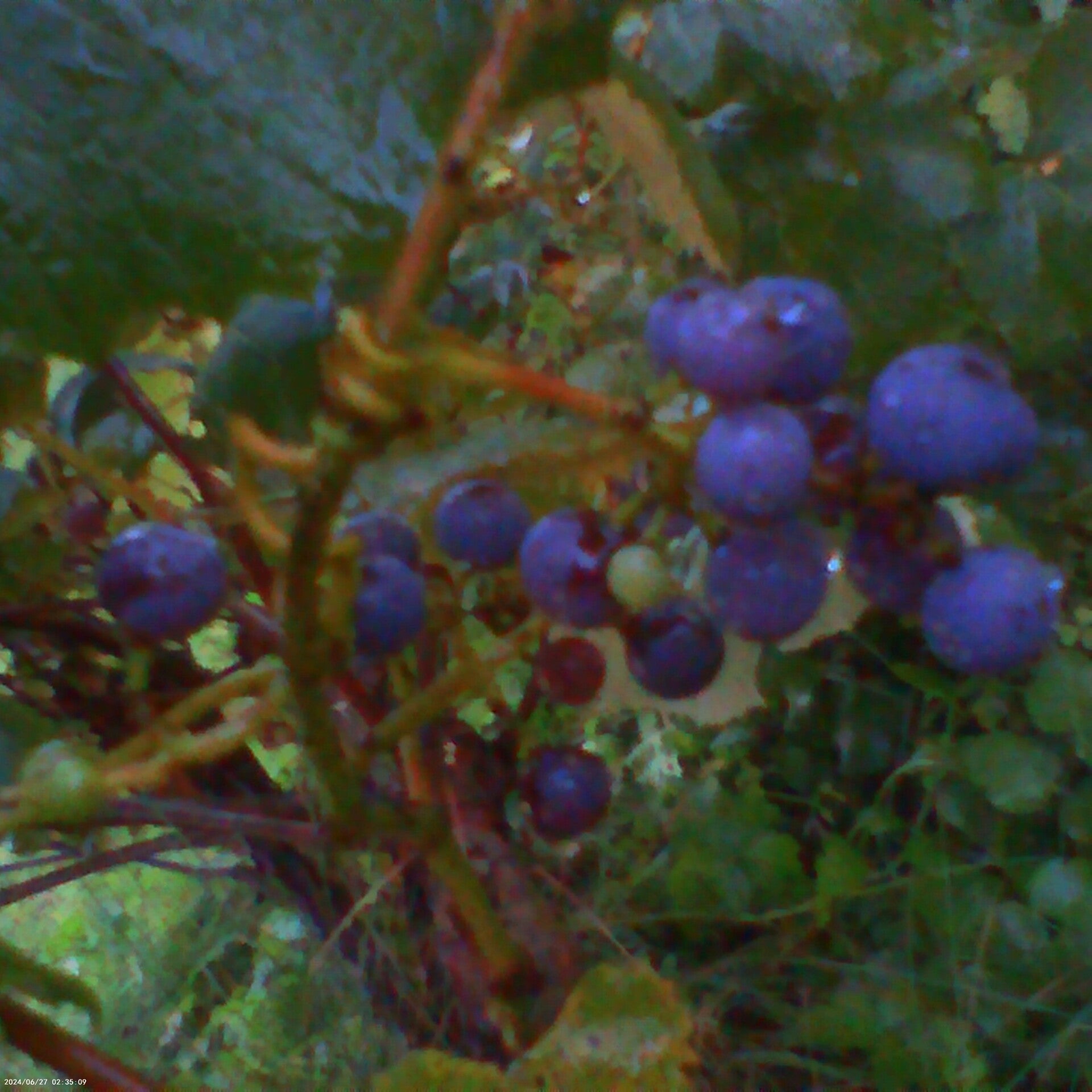 Three little bushels of ripened red grapes (Red grapevine, Vitis vinifera) have arrived at Green Mountain Farms 9/14/2025. It's a miracle!
