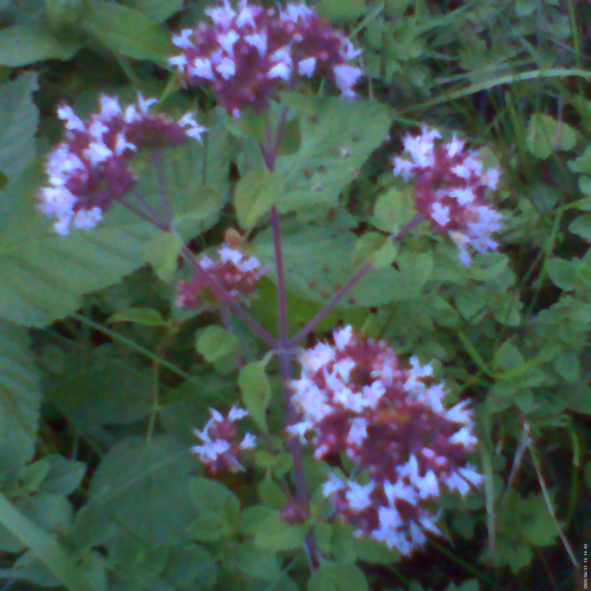 Wild marjoram (Origanum majorana) plant and spice has purple flowers at Green Mountain Farms.
