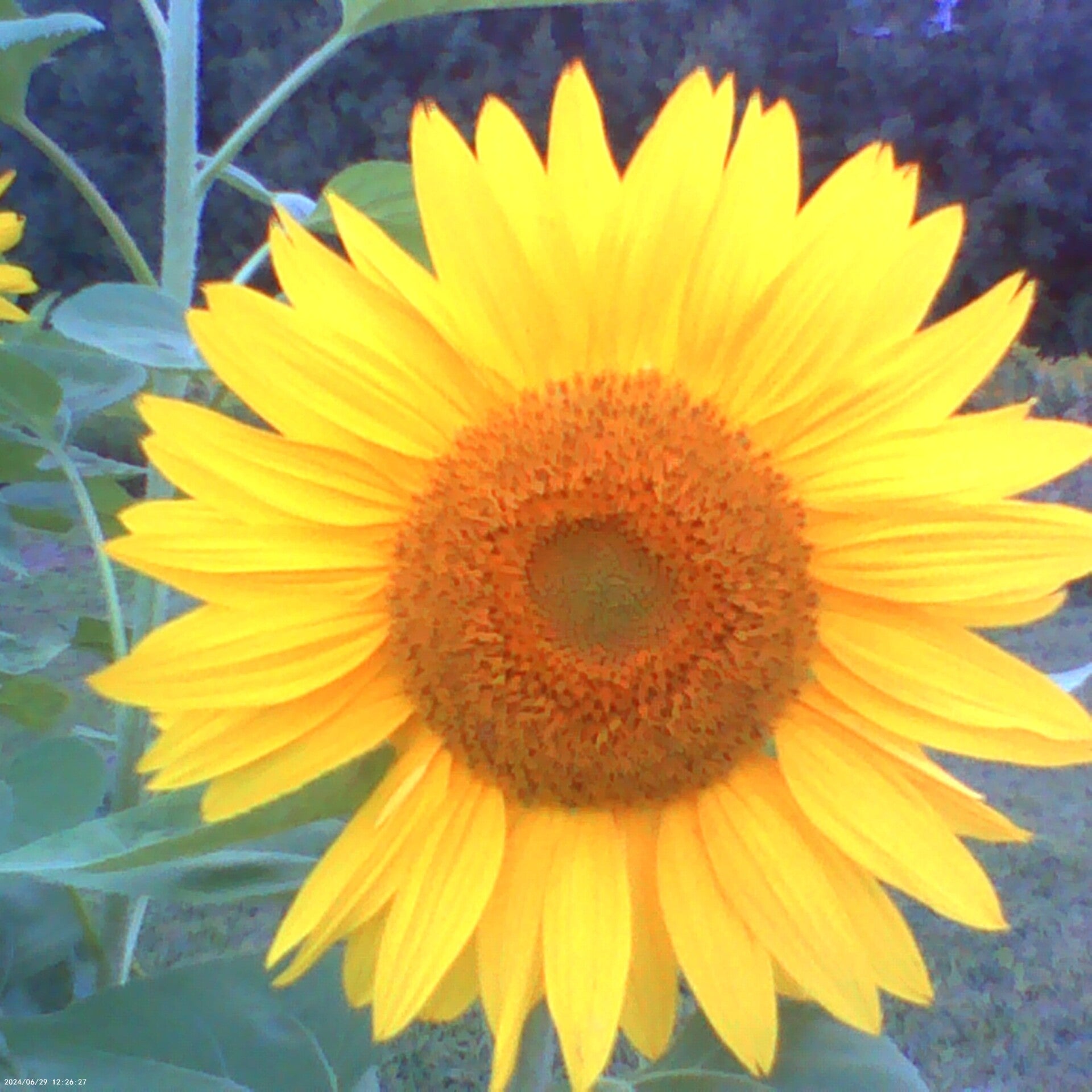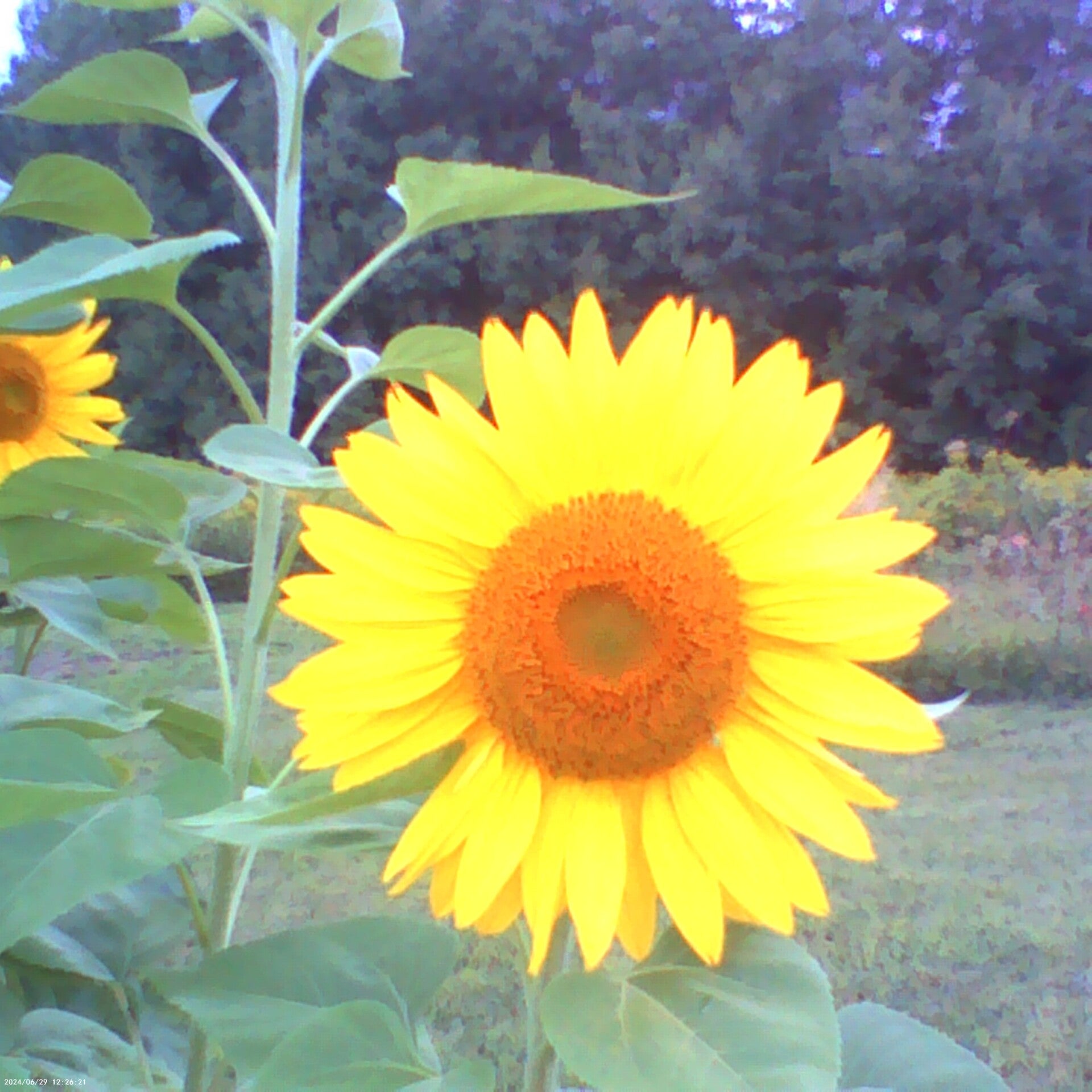 Red grapevine (Vitis vinifera), whose grapes might not turn red this year due to overly cold weather in Vermont, and Yellow sunflowers (Helianthus annuus) at Green Mountain Farms.