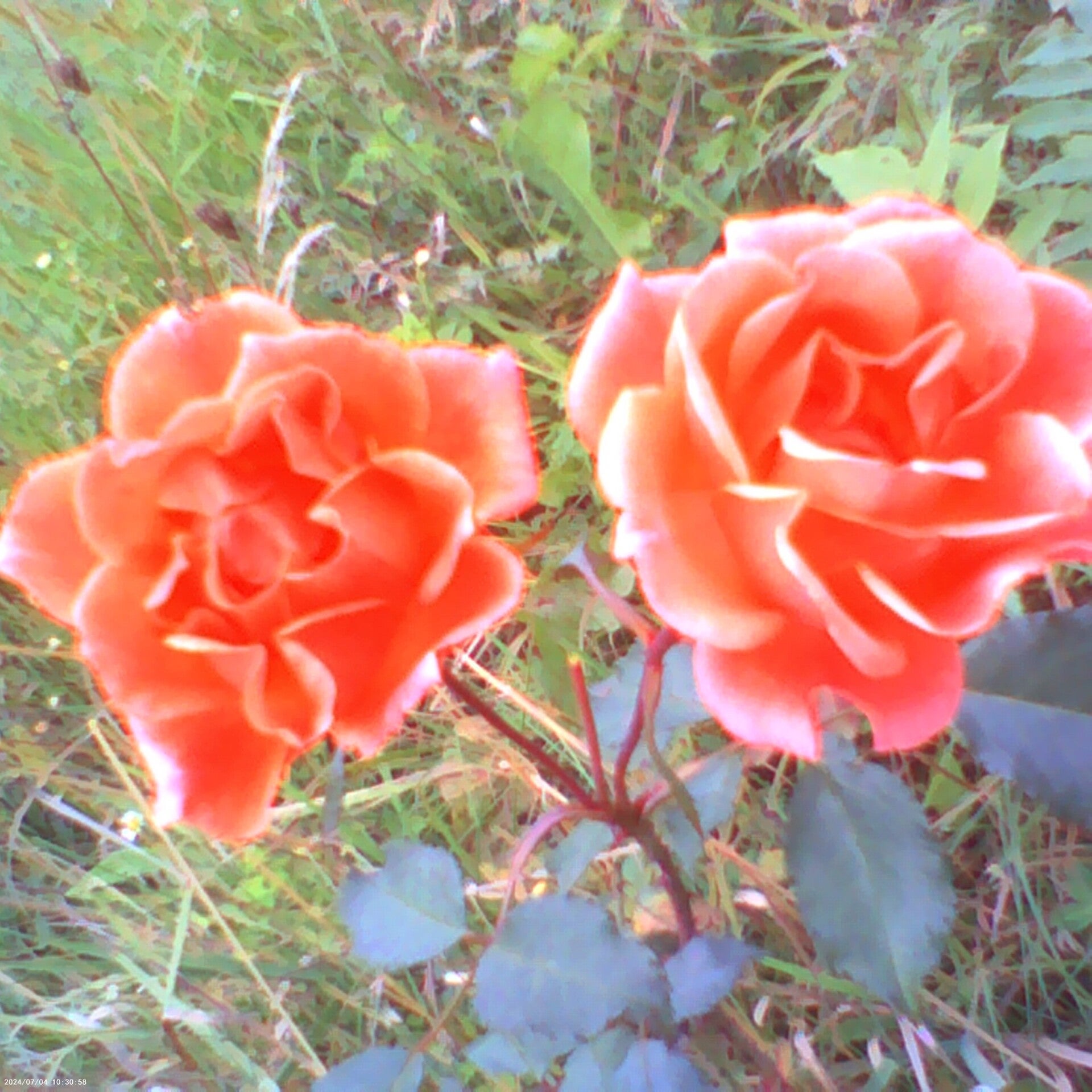 Hybrid tea rose (Orange knockout roses, Rosa naranja), in the garden at Green Mountain Farms.