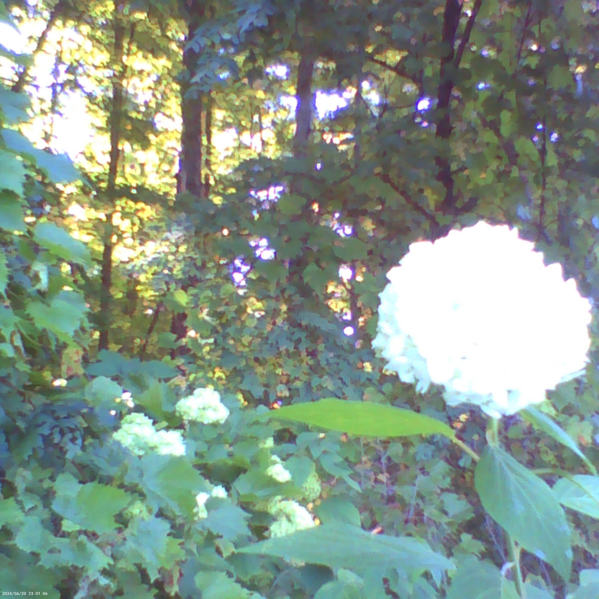 Green buds and white flowers of the Hydrangea bush (Hydrangea arborescens).